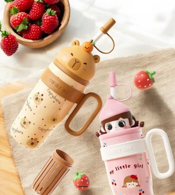 ¡Hidratarse nunca fue tan divertido! 💕 Estos vasos térmicos infantiles se destacan por su diseño súper tierno con tapa 3D de personajes, ideales para peques (¡y grandes fans de lo cute!).