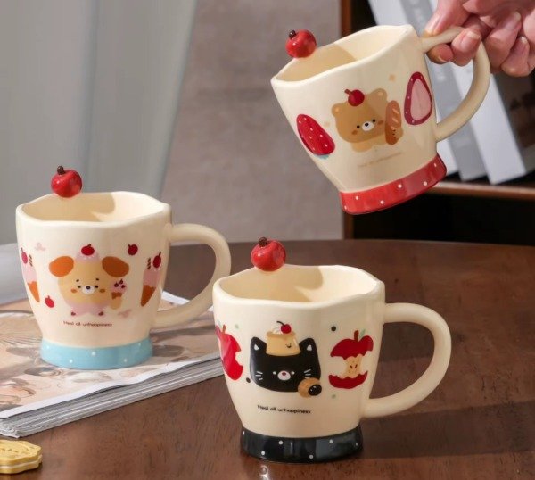 Dale un toque dulce y original a tus desayunos o meriendas con estas tazas de cerámica estilo kawaii 💕. Su diseño encantador con animalitos y frutas las convierte en el complemento perfecto para disfrutar café, té o chocolate caliente.