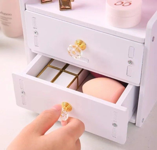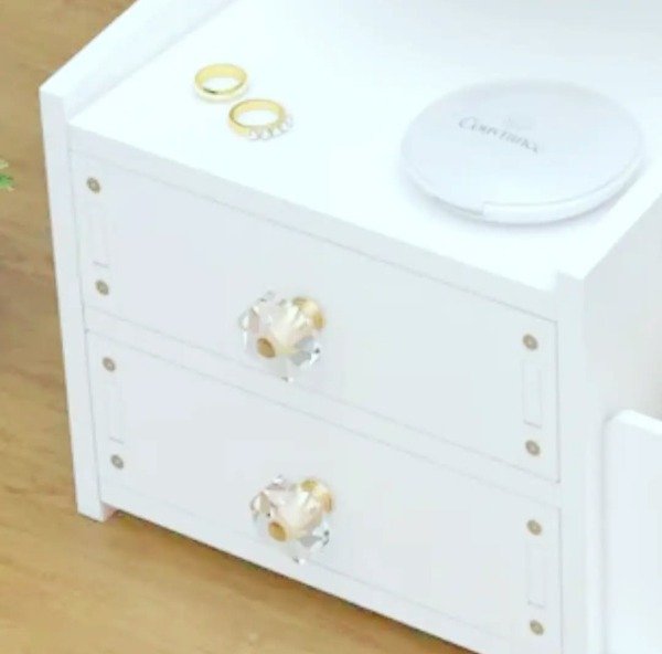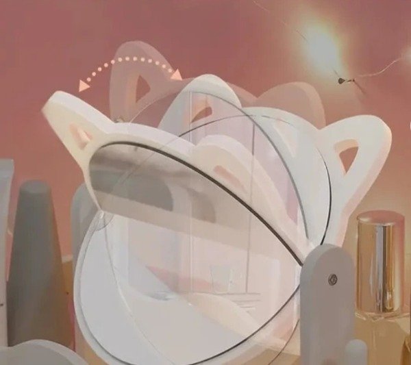 Hermoso Alajero/organizador de make up gatito 😻🥰. Con espejo giratorio y orejitas en forma de gatito. Con dos cajoneras para guardar make up, joyas...., viene con herrajes con detalles en dorado y cristal. Con un organizador con tres divisiones en uno de los laterales para poder poner cremas , perfumes... Material de PVC. Súper original y muy cute ❤️❤️