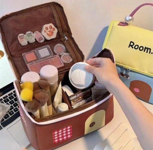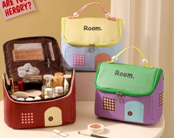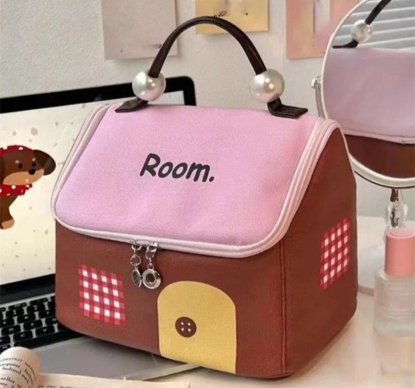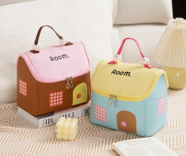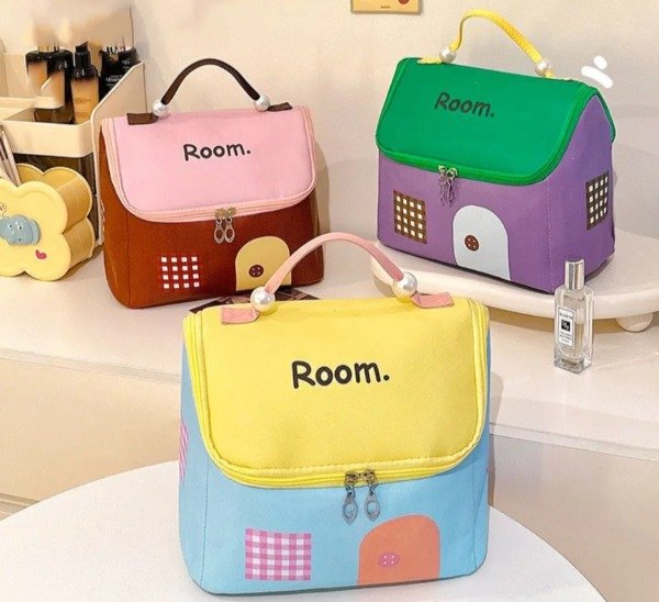 Hermoso organizador super original!, con tela impermeable , forrado por dentro con mucho espacio . Ideal para usar con necesser, bolso de viaje, para guardar accesorios y cosméticos. Con dolsillos en la parte interior de la tapa. Con manija qué en sus extremos trae perlas a modo decorativo. Con combinación de colores al estilo kawaii!.
