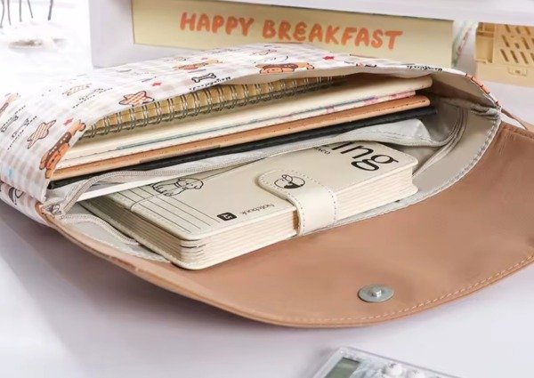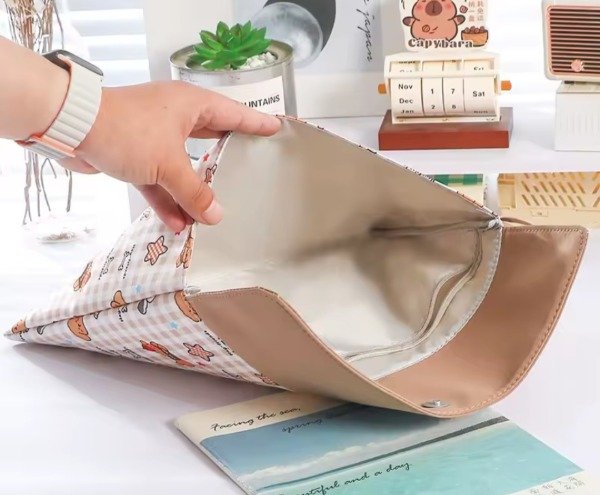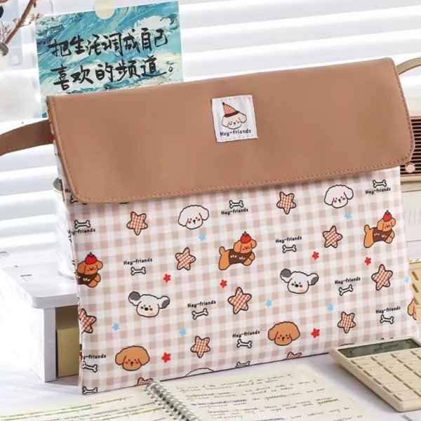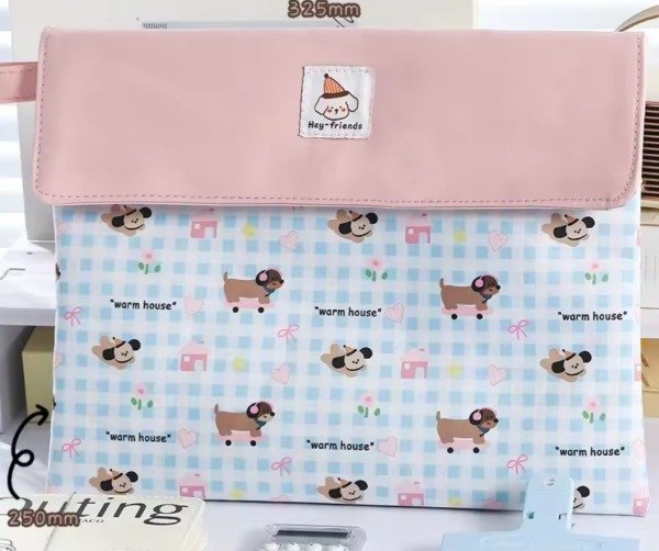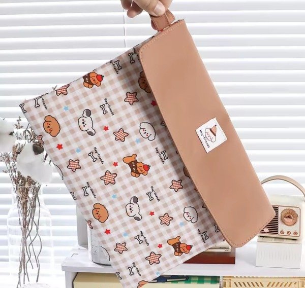 Organizador portátil con tela impermeable con hermoso diseño de animalitos super tiernos. Con solapa imantada al frente para poder cerrarlo. Su interior viene forrado con espacio para guardar libros, agenda, compu portátil...