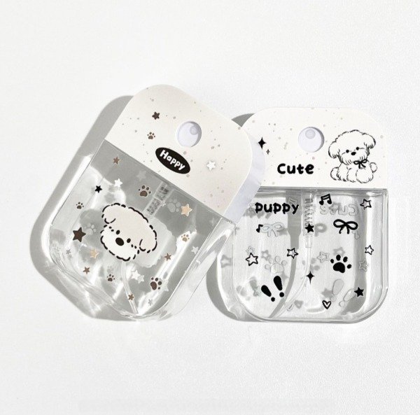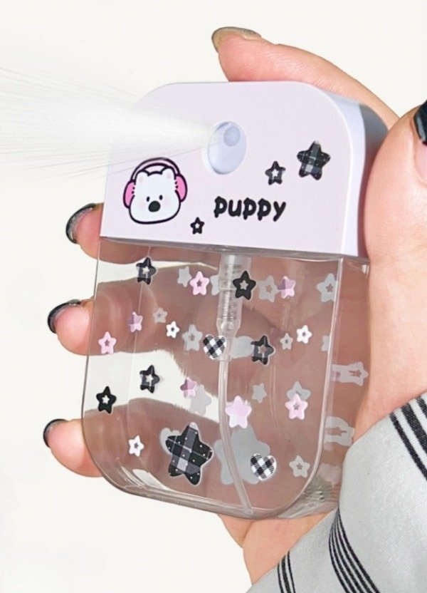 Frasco pulverizador cute puppy, ideales para uno escolar, oficina.... De plástico resistente y transparente, permite ver el interior y controlar fácilmente la cantidad de liquido disponible.