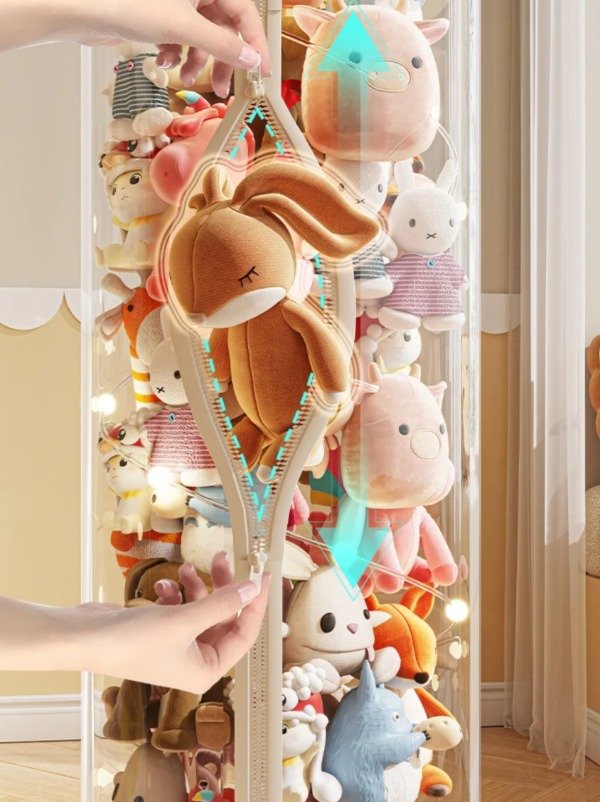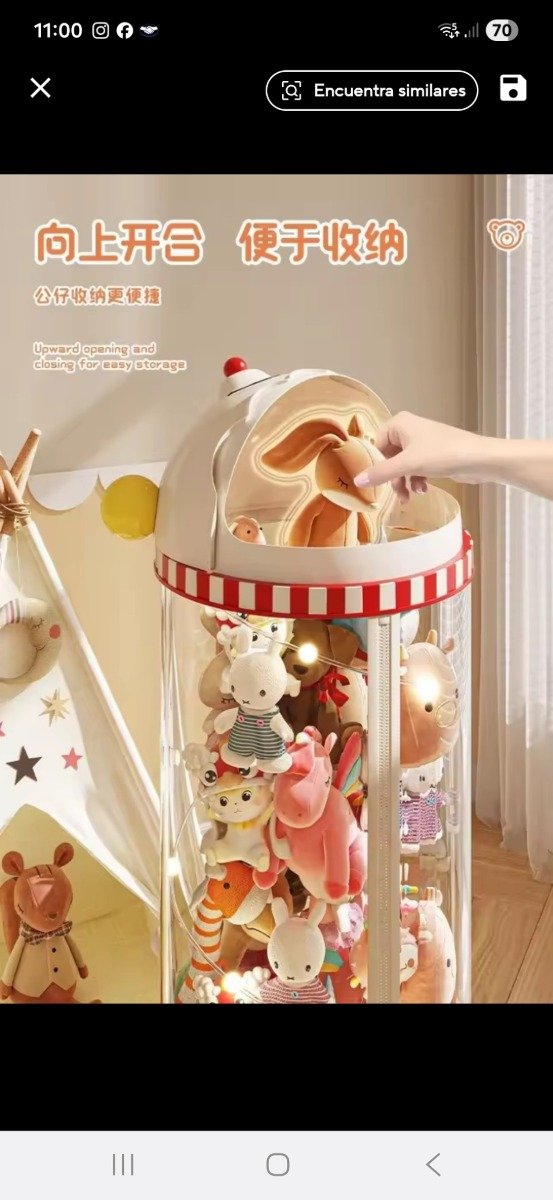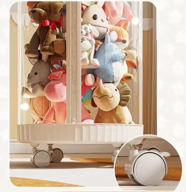 Organizador transparente hecho en materiales Pet+PP mas duraderos. Con cierre y ruedas lo que facilita su traslado. Ideal para tener todos los peluches, pelotas.. super organizadas . Con un diseño super original y divertido al estilo kawaii. Con luces a pilas para decorarlo.